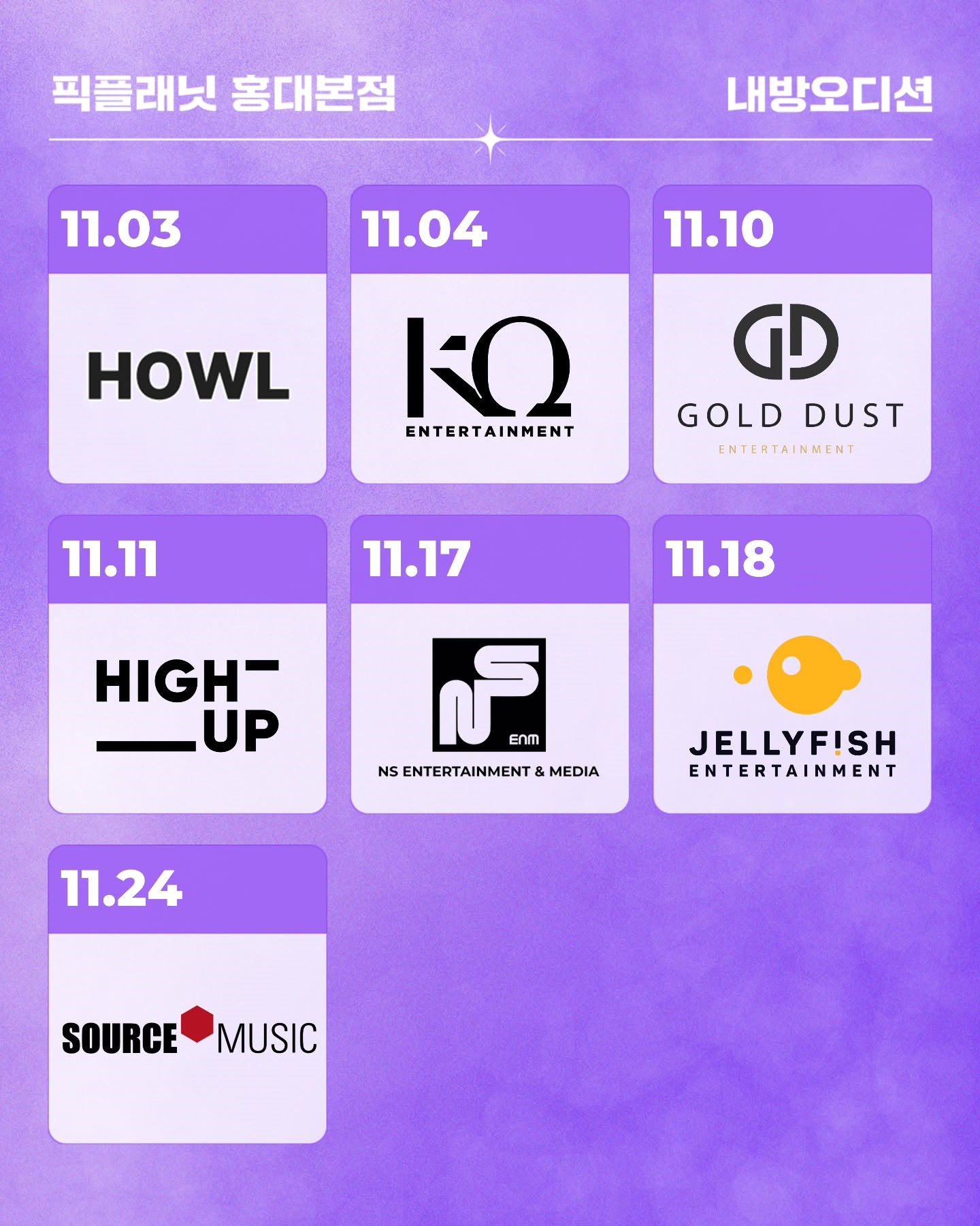 [오디션정보]픽플래닛 11월 이달의 오디션 공개